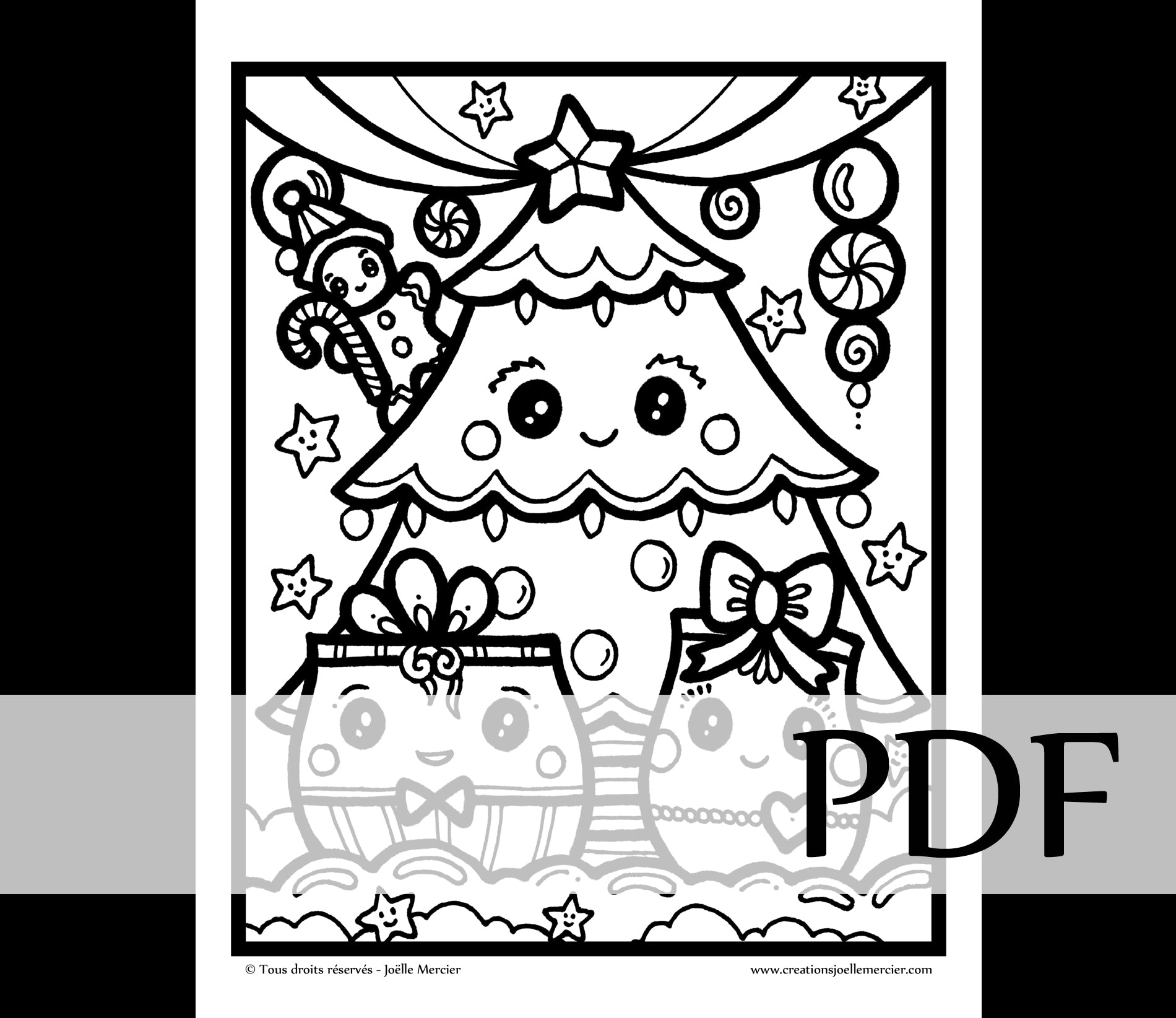 Téléchargement instantané - PDF à imprimer et colorier - Dessin pour enfant - SAPIN DE NOËL KAWAII