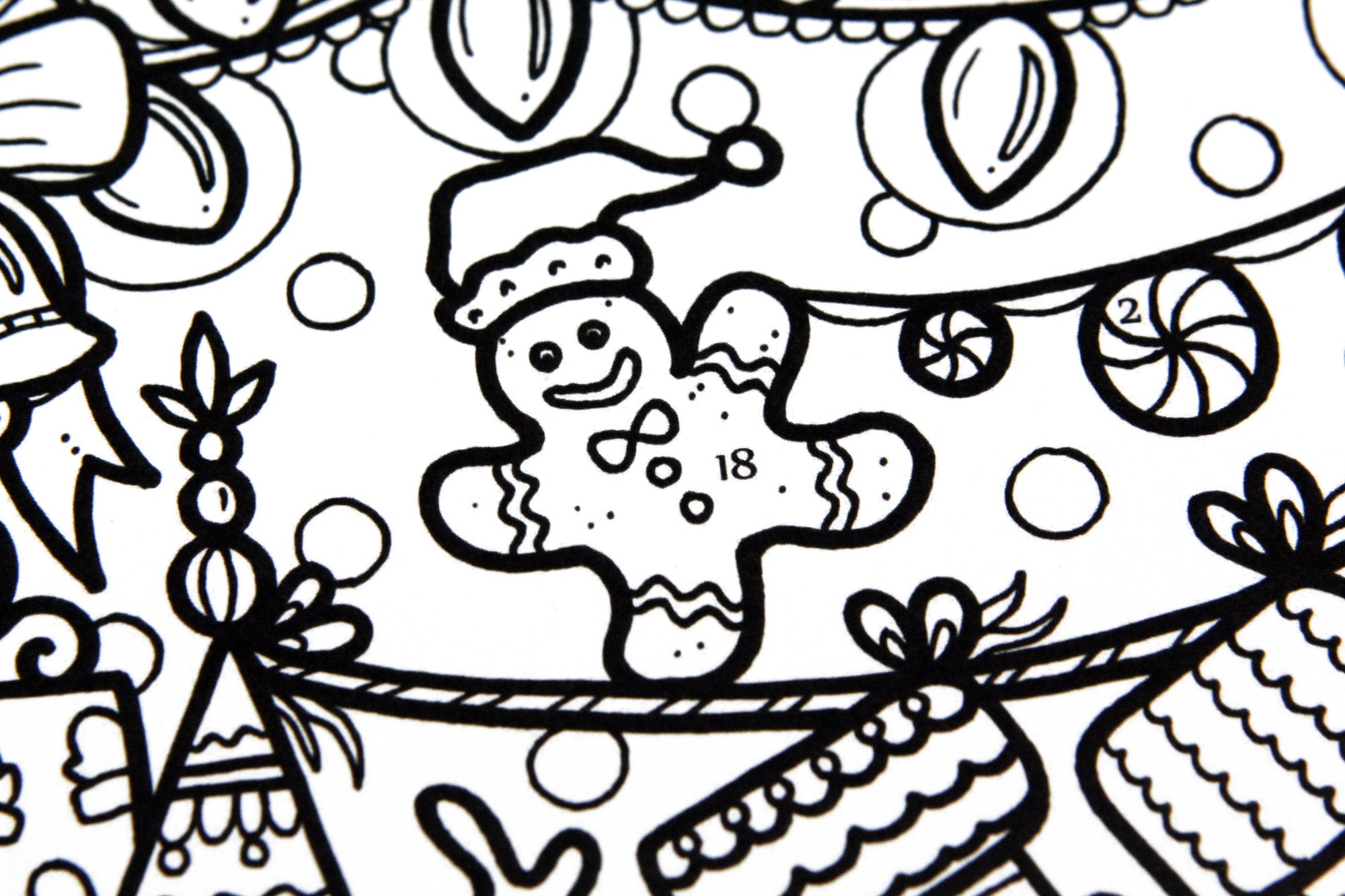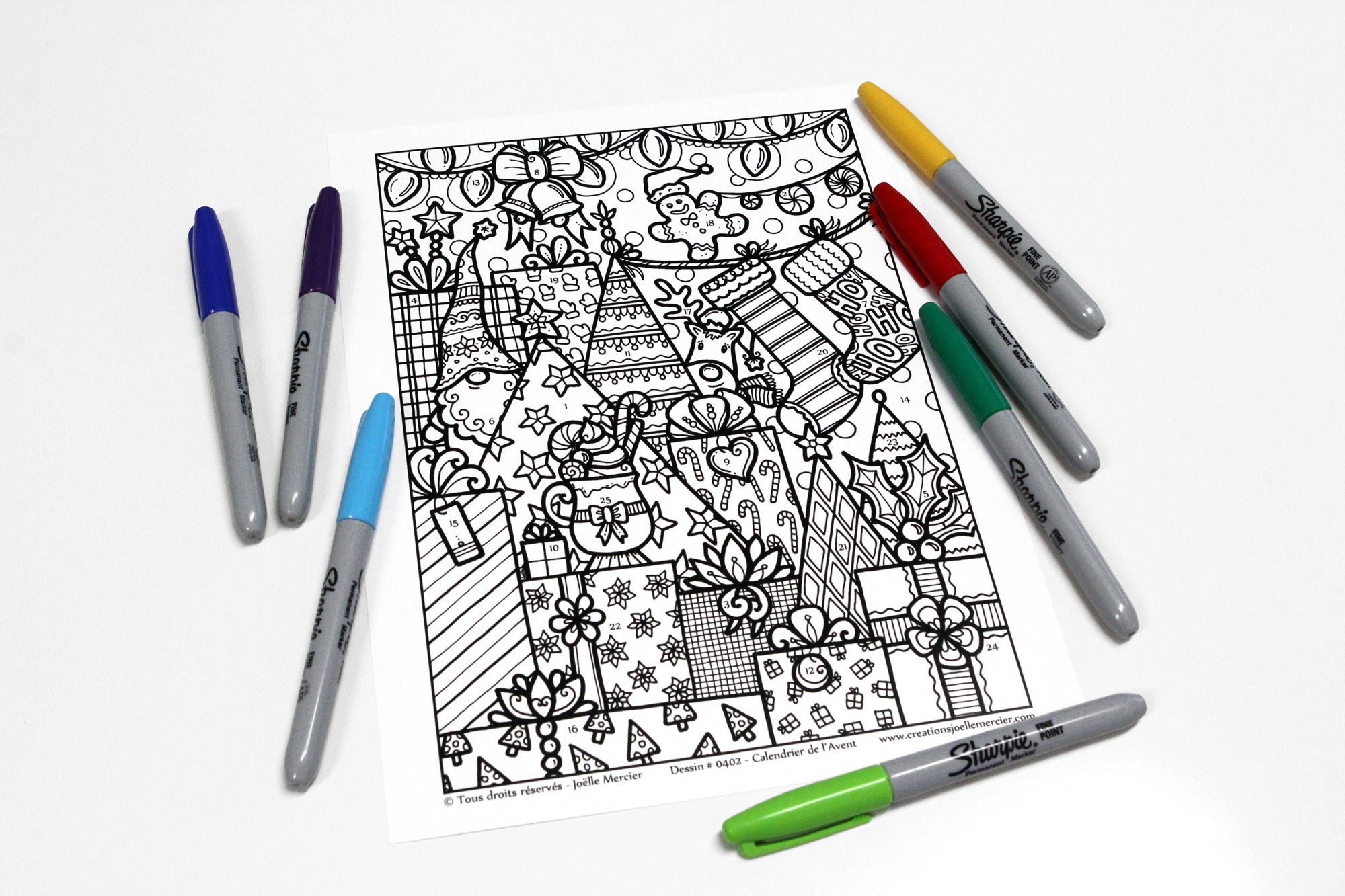 La version numérotée sert de calendrier de l'Avent, une section à colorier chaque jour du 1er au 25 décembre.