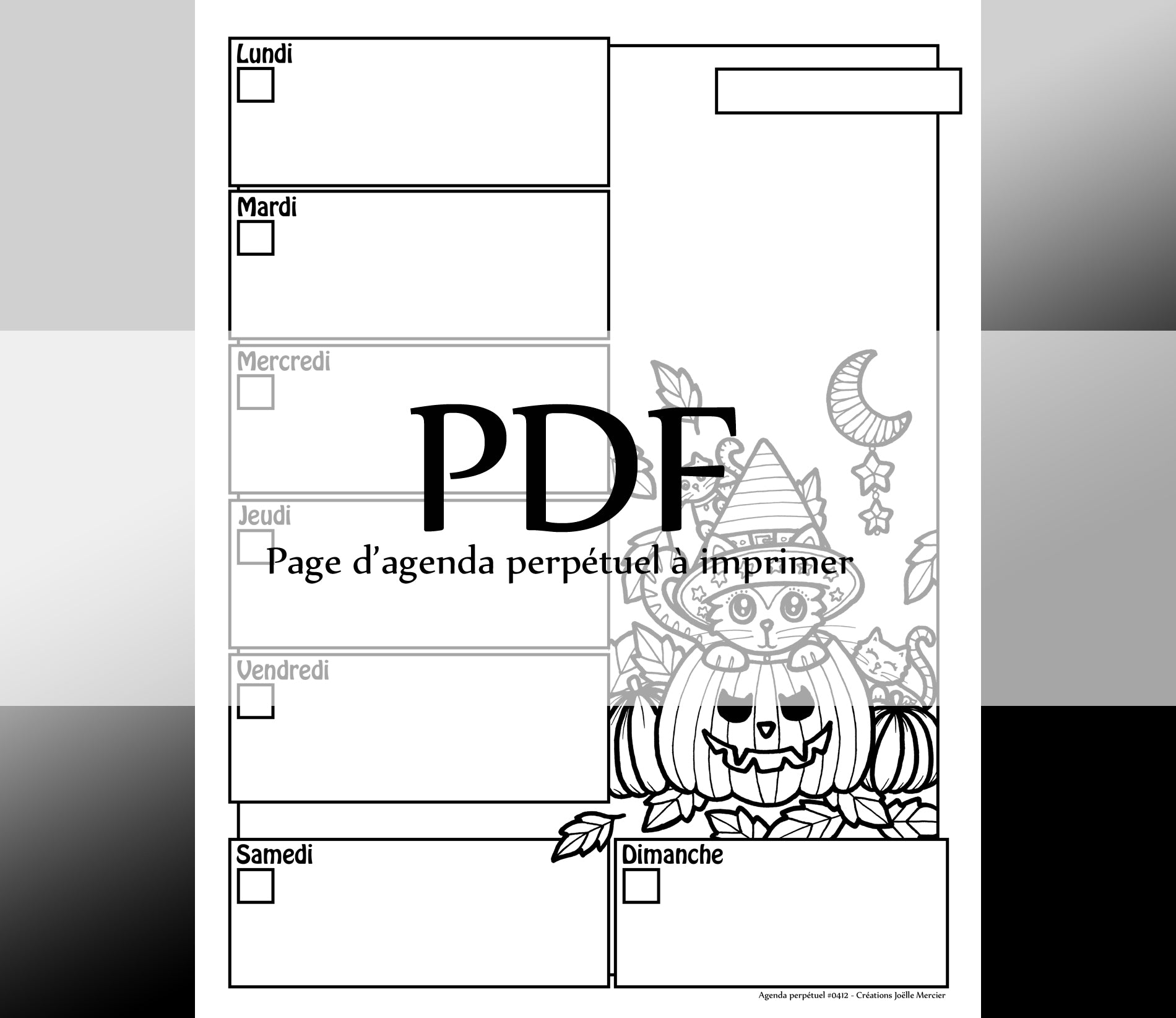 Page #0412 Agenda perpétuel - Téléchargement instantané - PDF à imprimer, CHAT CITROUILLE, Halloween