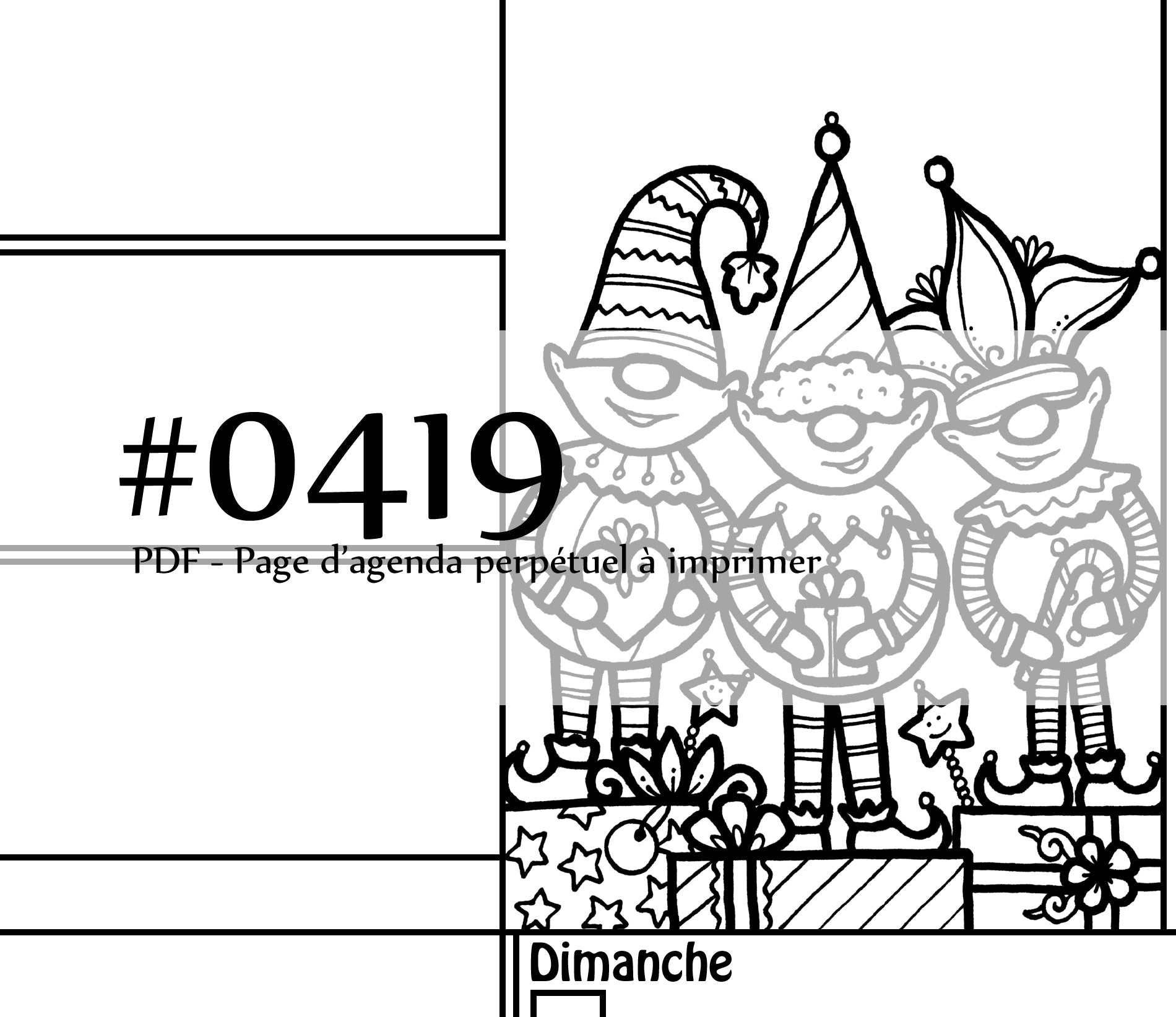 Page #0419 Agenda perpétuel - Téléchargement instantané - PDF à imprimer, TRIPLET DE LUTINS, Noël