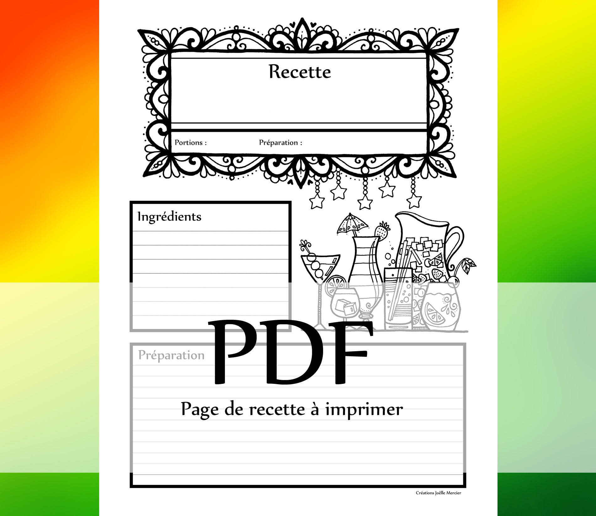 Page Recette - COCKTAILS - Téléchargement instantané - PDF à imprimer