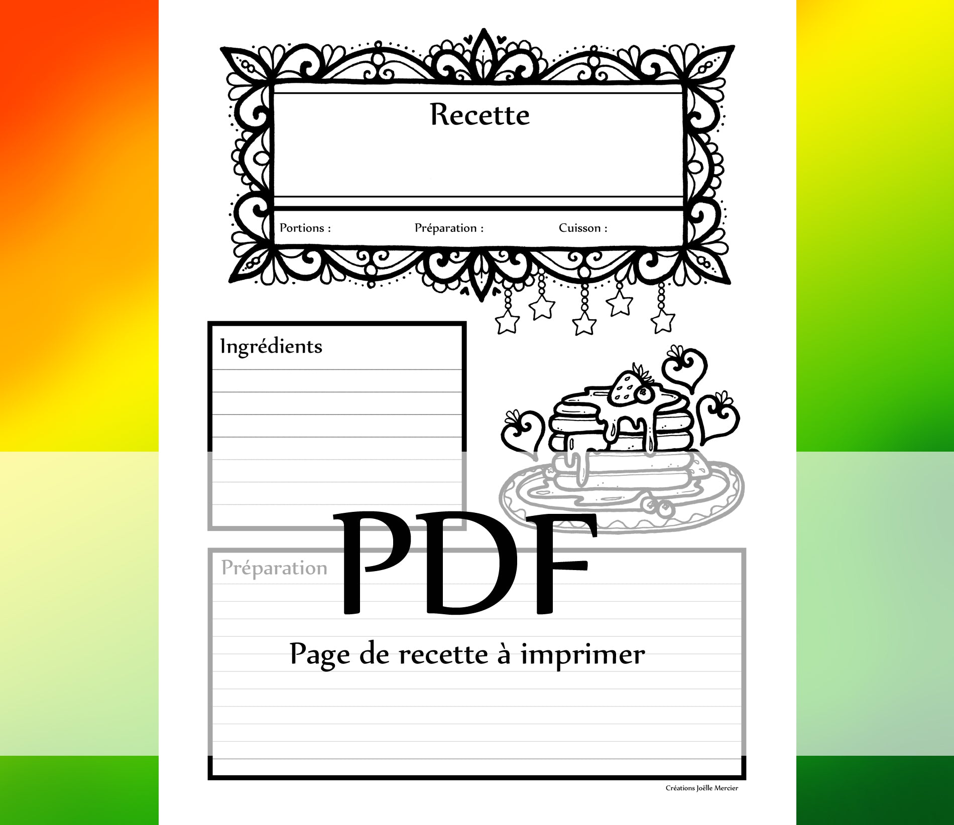 Page Recette - CRÊPES, pancakes - Téléchargement instantané - PDF à imprimer