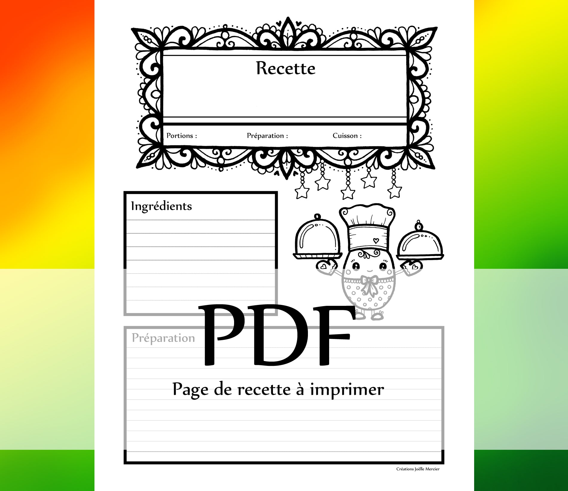 Page Recette - OEUF CUISINIER - Téléchargement instantané - PDF à imprimer