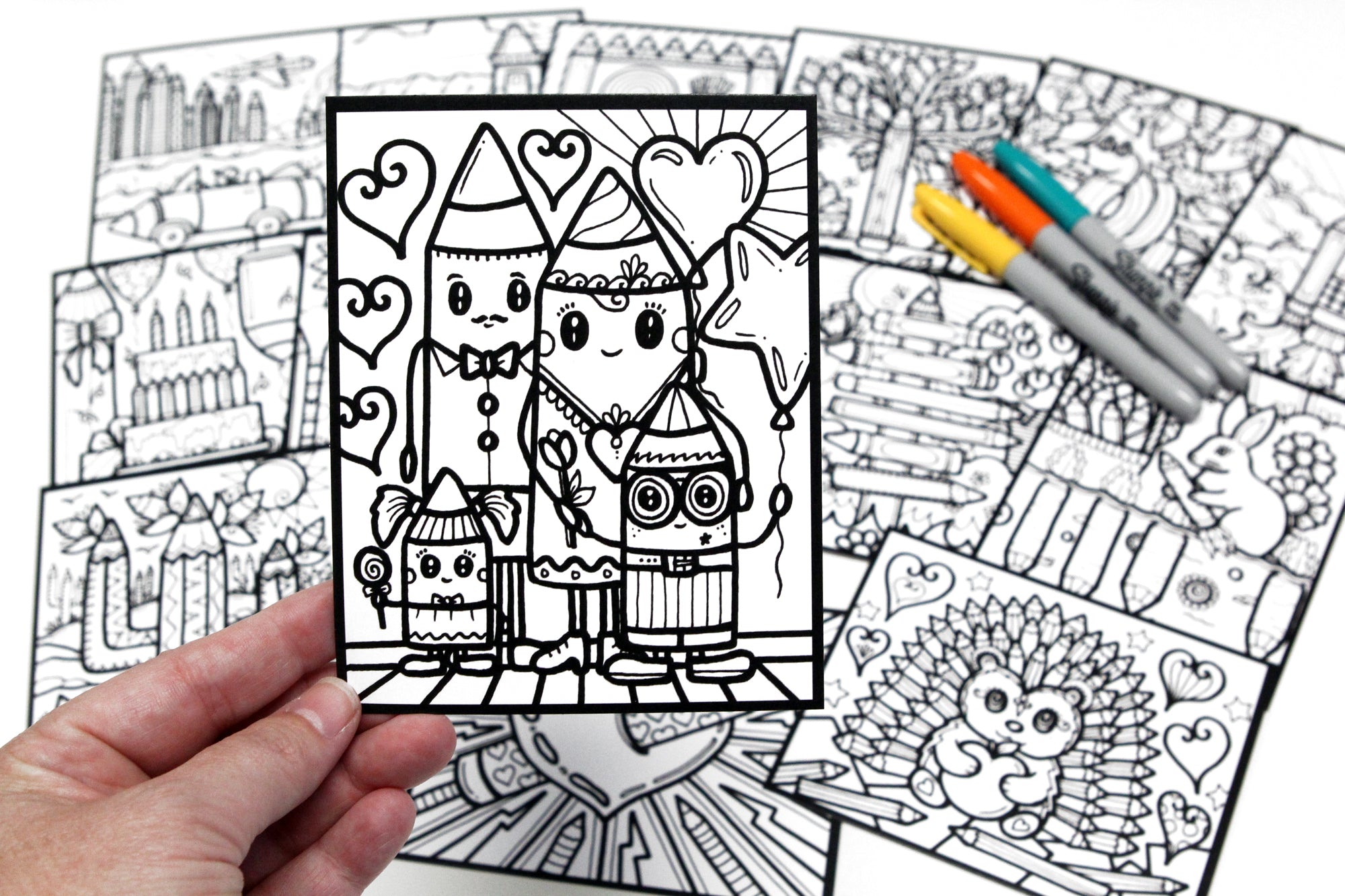 Sachet #62 Crayons, inclus 15 dessins à colorier, imprimés sur carton, format 4x5 pouces