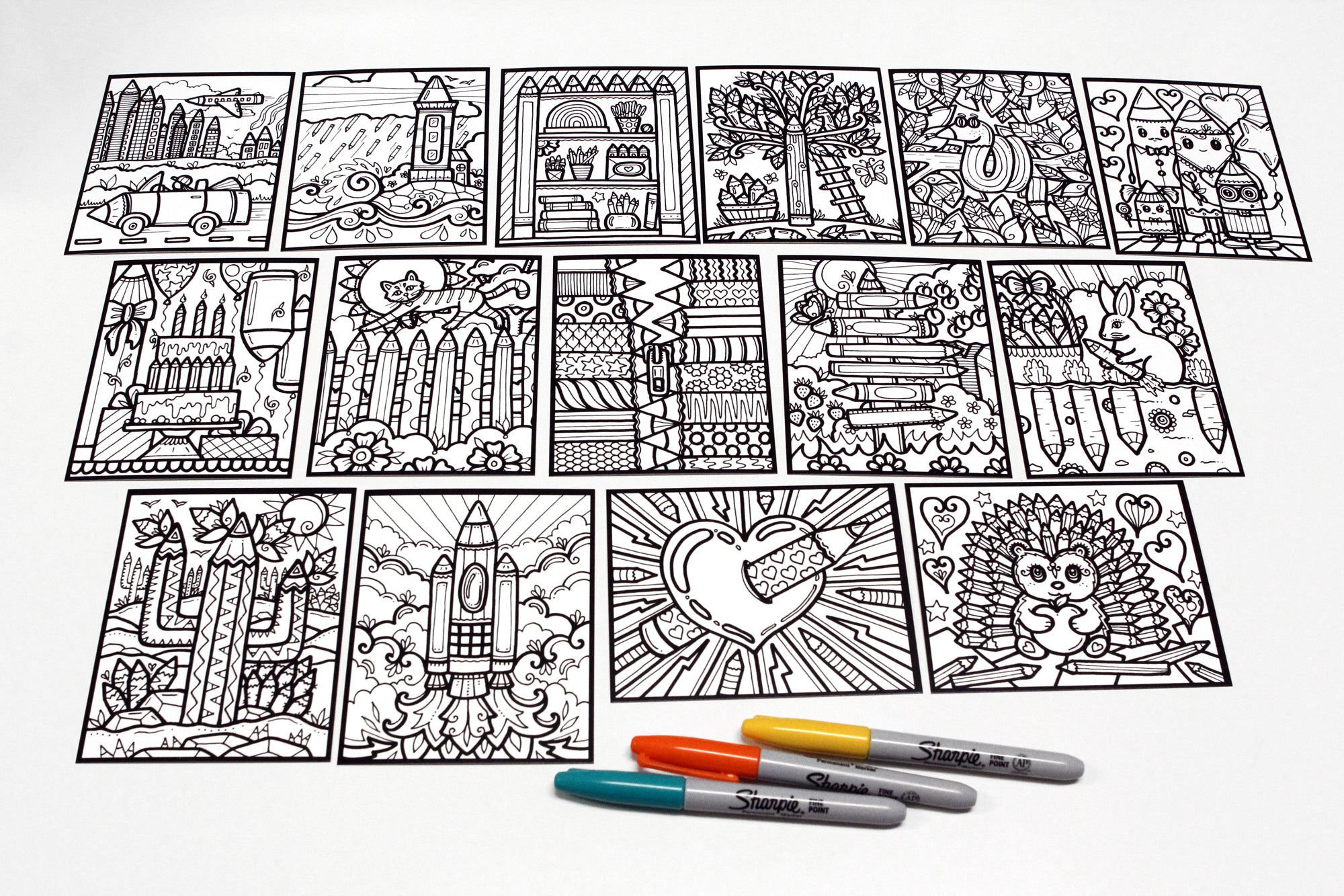 Une fois les dessins originaux terminés, ils sont numérisés et imprimés à des fins de coloriage pour votre plaisir!