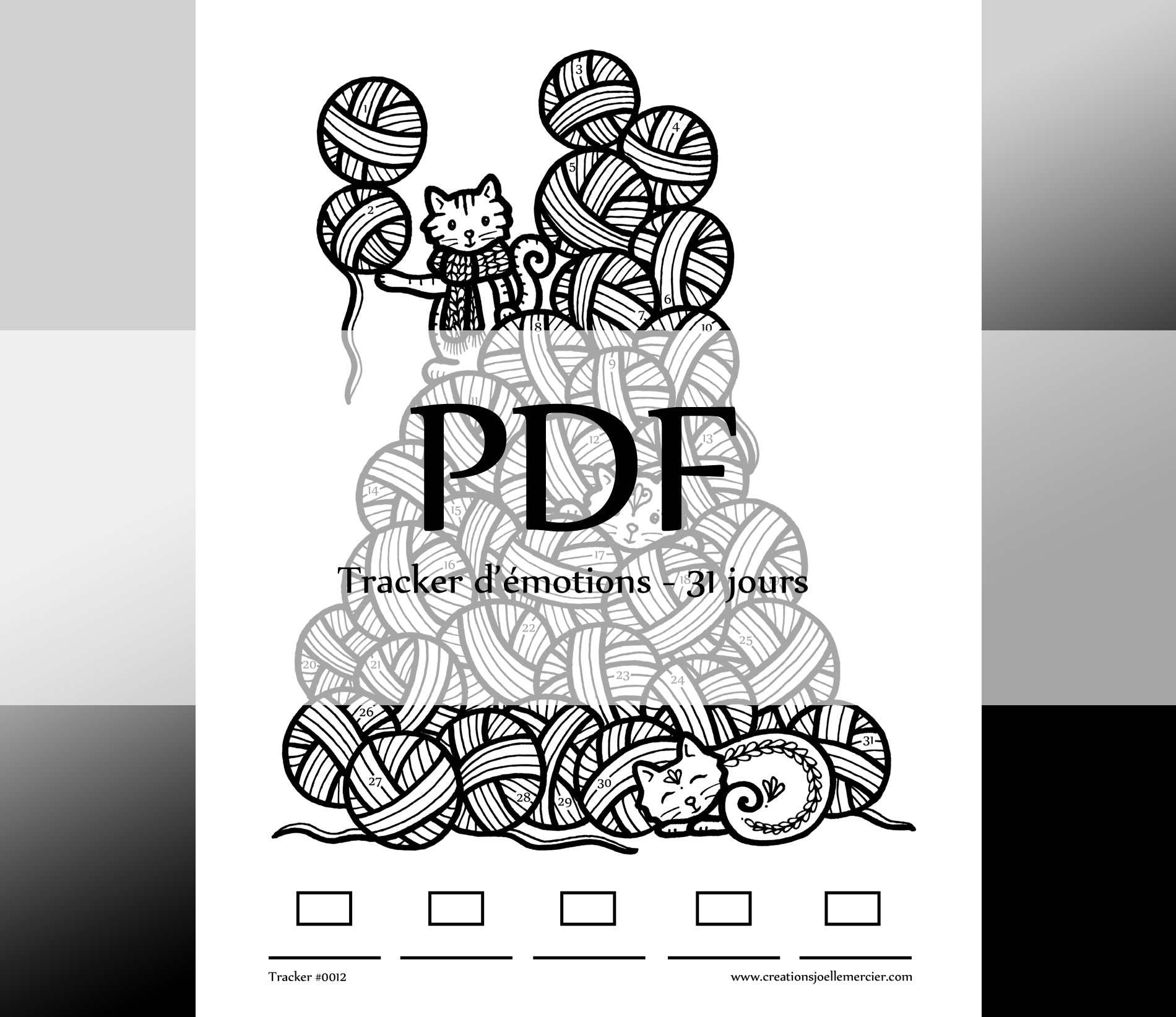 Tracker mensuel #0012 BALLES DE LAINE et chats - Téléchargement instantané - PDF à imprimer