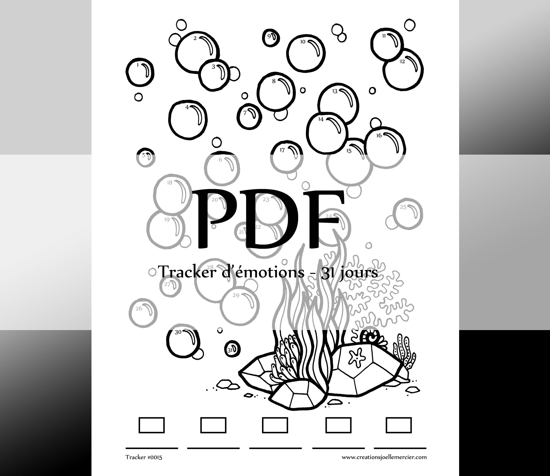 Tracker mensuel #0015 BULLES SOUS L'EAU - Téléchargement instantané - PDF à imprimer